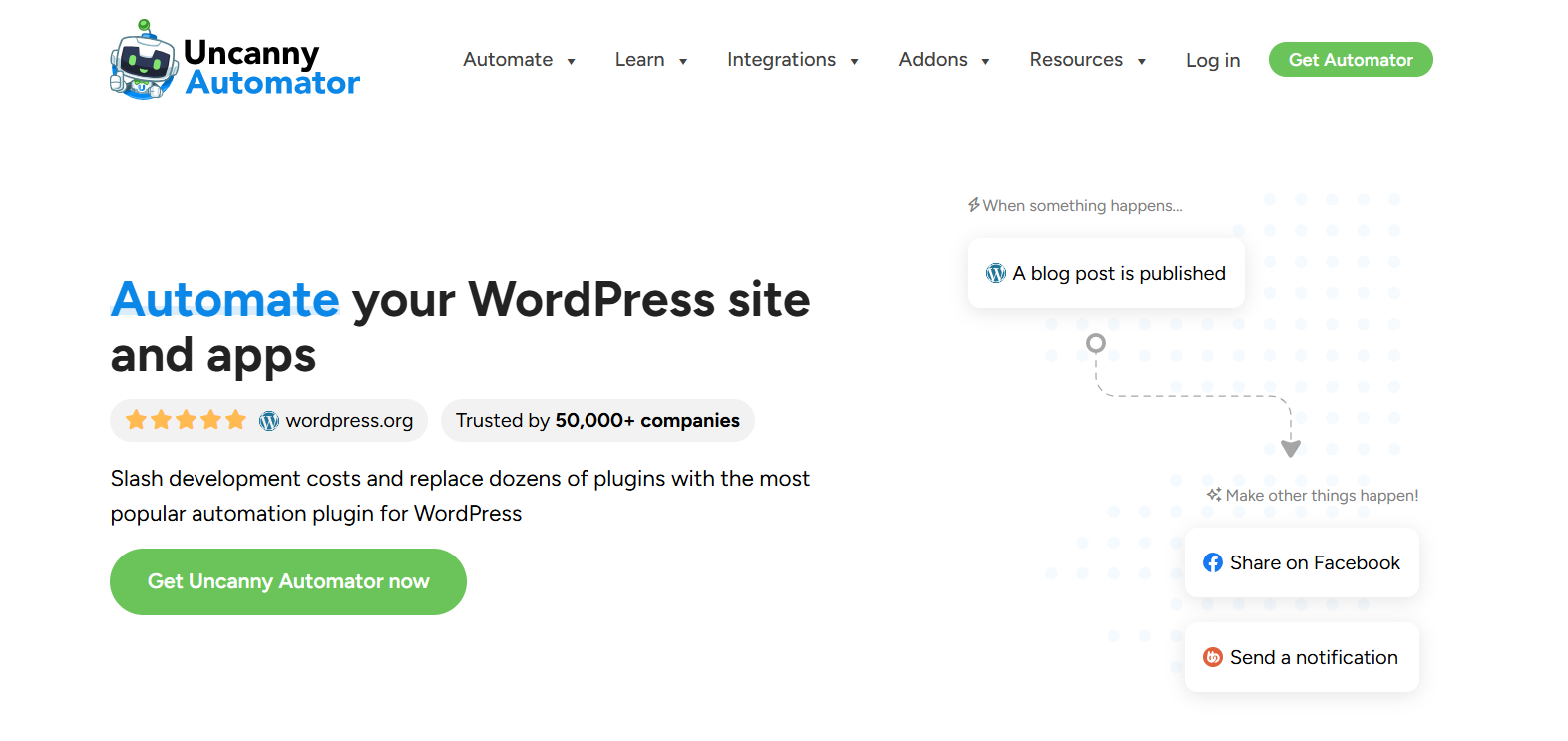 Uncanny Automator AI connects WordPress plugins and automates workflows. Supported by innovations from artificial Intelligent companies, it simplifies complex marketing automation tasks.