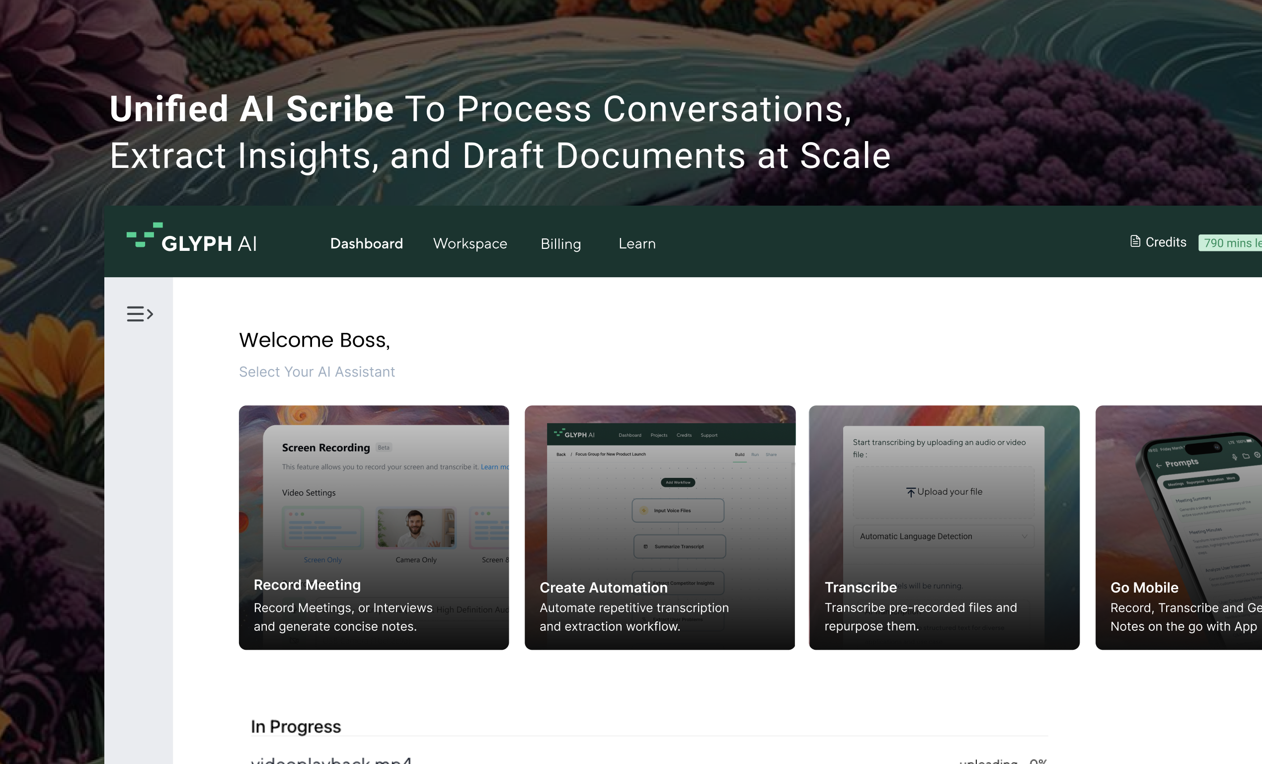 Glyph is the only platform built from the ground up to handle all transcription types – meetings, interviews, legal, sal...